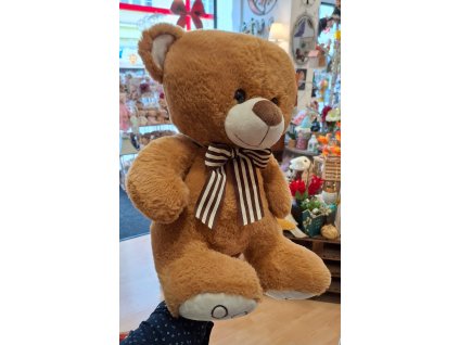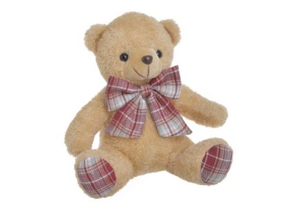 Sedící plyšový medvídek s kostkovanou mašlí. Materiál: textil + filc + úplet Rozměry: 20cmLx18cmWx20cmH