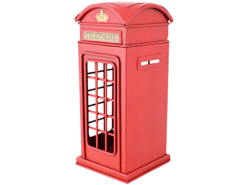 Originální pokladnička napodobující starou telefonní budku z Velké Británie v Retro stylu.