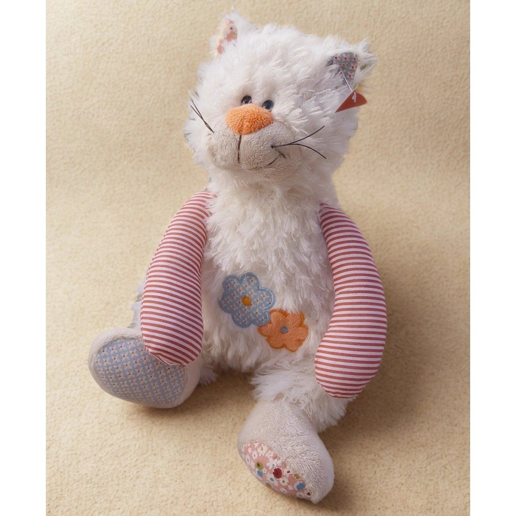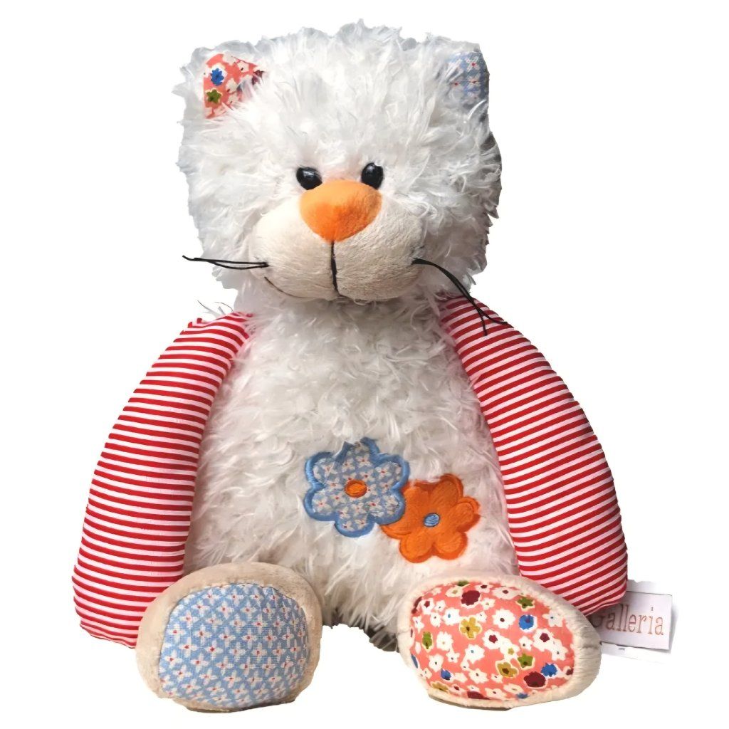 Bílá plyšová kočička z různých druhů látek, 33cm, La Galleria
