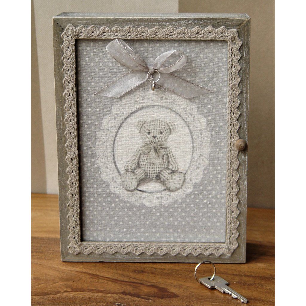 Dřevěná skříňka na klíče s textilním obrázkem Retro medvídka, 20x24cm, La Galleria