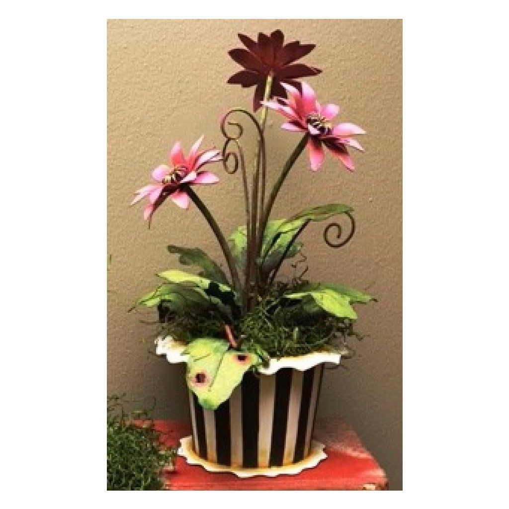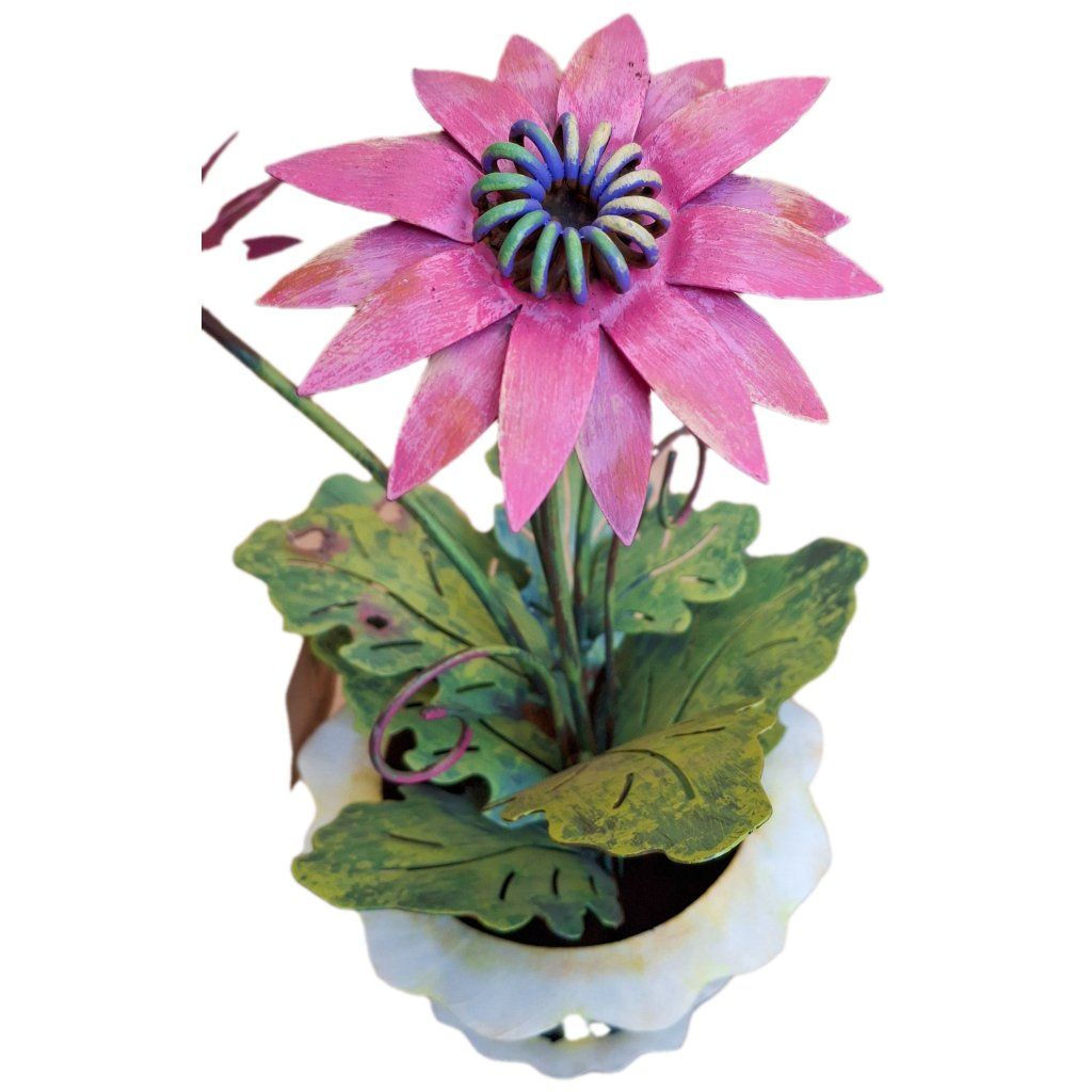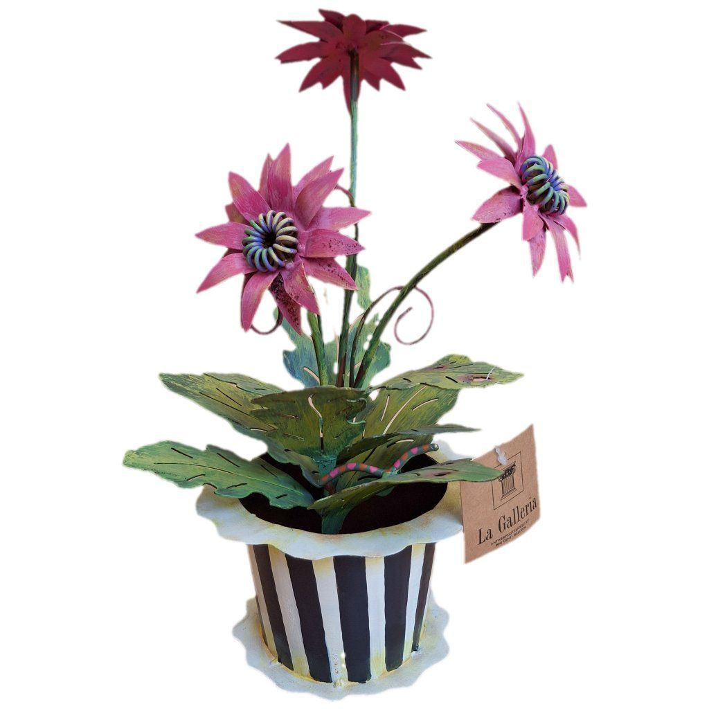Kovová květina v květináči s růžovými květy, 40cm, La Galleria