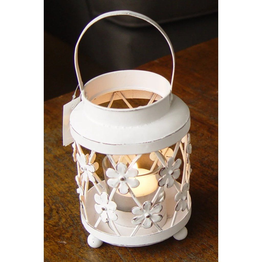 Kovový bílý svícen s kytičkami, 20cm, La Galleria