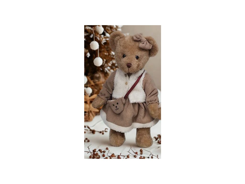 Plyšová medvědice v zimním béžovém outfitu, 38cm. Elegantní plyšový medvěd od renomované belgické značky La Galleria. Luxusní a stylový doplněk. Medvěd je vyroben z hebkého plyše nejvyšší kvality, příjemného na dotek, a jeho outfit vyniká jemnými detaily a precizním zpracováním, což ho dělá ideálním pro sběratele i jako dárek pro milovníky stylových plyšáků. Velikost 38cm.