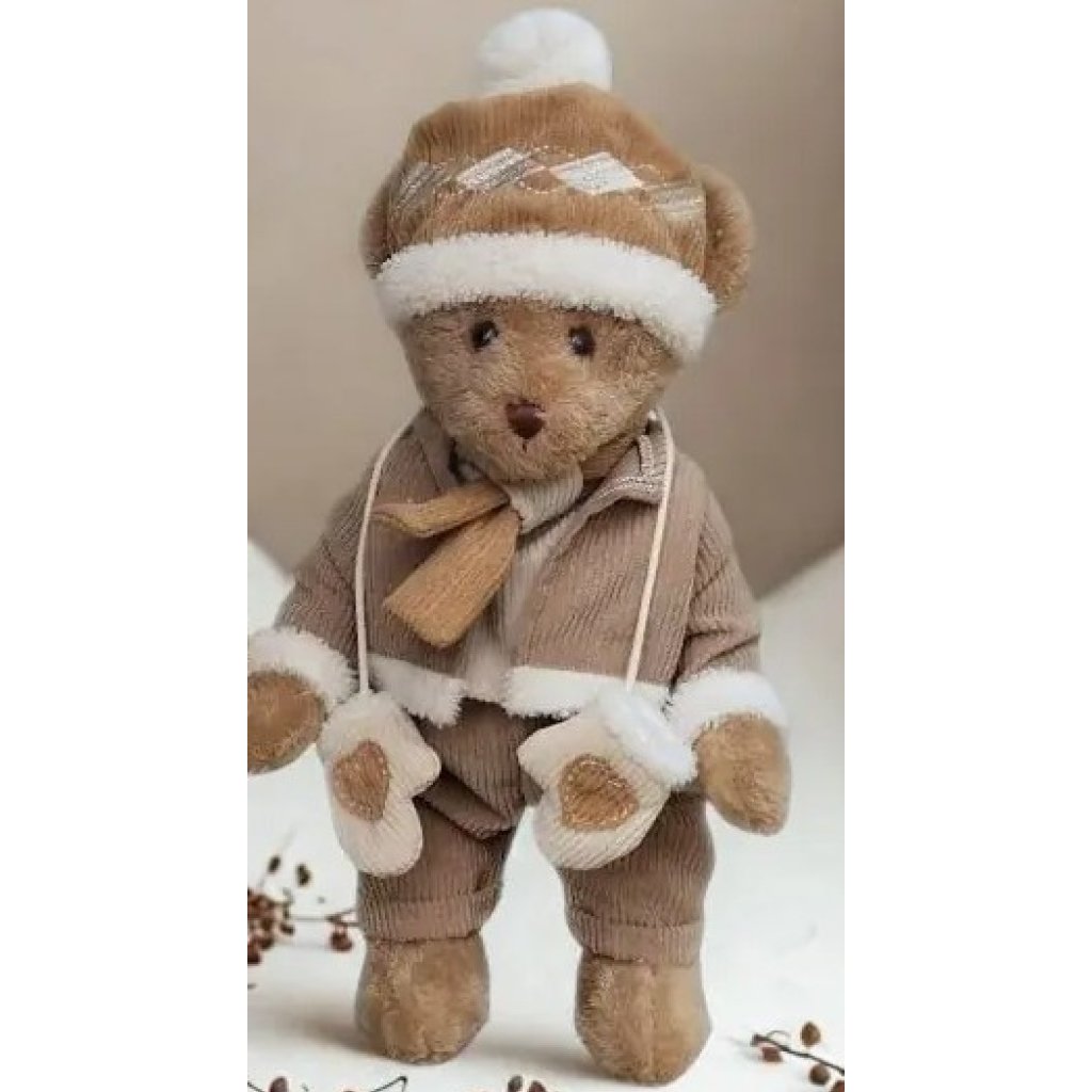 Plyšový medvěd v zimním béžovém outfitu, 38cm, La Galleria