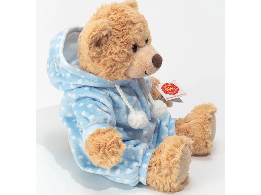 Tento modrý pyžamový medvídek má vše, co dělá medvídka dokonalým: obzvláště měkký plyš ve vysoké kvalitě soft-touch vyplněný měkkou polyesterovou vatou, roztomilé knoflíkové oči a roztomilý výraz v obličeji. Obleček lze oblékat i svlékat, takže hraní s roztomilým medvídkem je ještě zábavnější! Medvídek je vhodný pro děti od 0 let a je dokonalým kamarádem ve všech situacích. Plyšová hračka z kolekce Hermann Teddy v sobě spojuje požadavky dětí i rodičů: je navržena tak, aby byla vhodná pro děti, a s mnoha láskyplnými detaily velmi pečlivě zpracována. Akreditované zkušební ústavy potvrzují bezpečnost výrobku a jeho shodu se všemi platnými směrnicemi EU pro hračky. Společnost Teddy-Hermann z franckého města Hirschaid v Bavorsku je rodinný podnik, který se již čtvrtou generaci věnuje tématu měkkých hraček. Přírodní značková plyšová zvířátka z kolekce Hermann Teddy jsou něčím výjimečným a přesvědčí nejen svými láskyplnými detaily, ale také mimořádně vysokou kvalitou. Všechny plyšové hračky procházejí přísnými testy výrobků v nezávislých a renomovaných zkušebnách.- Vhodné pro děti od 0 let- Plyšový medvídek s pyžamkem z plyše v prvotřídní kvalitě- naturalistický a pro děti přívětivý design - ideální pro nápadité hraní a mazlení- cool a trendy doplněk do všech obývacích pokojů a dětských pokojůPokyny pro péči: - v případě potřeby je možné použít plyšovou hračku s plyšovým motivem: Praní při 30 stupních na jemný cyklus s pracím prostředkem na vlnu, odstřeďování na max. 600 otáček, nesušit v sušičceVrchní materiál: polyesterový plyšVýplň: polyester