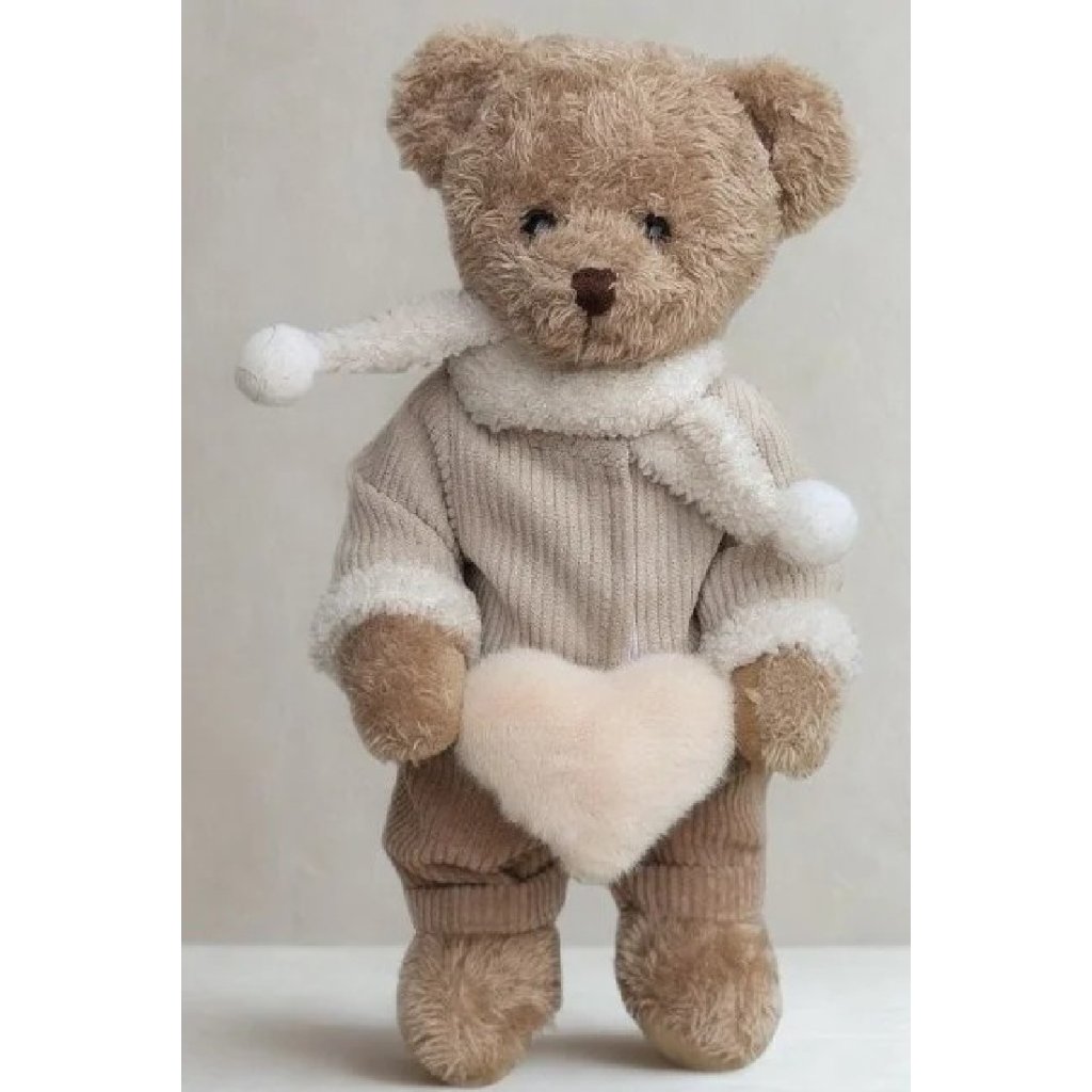 Plyšový medvídek v zimním béžovém outfitu se srdíčkem, 30cm, La Galleria
