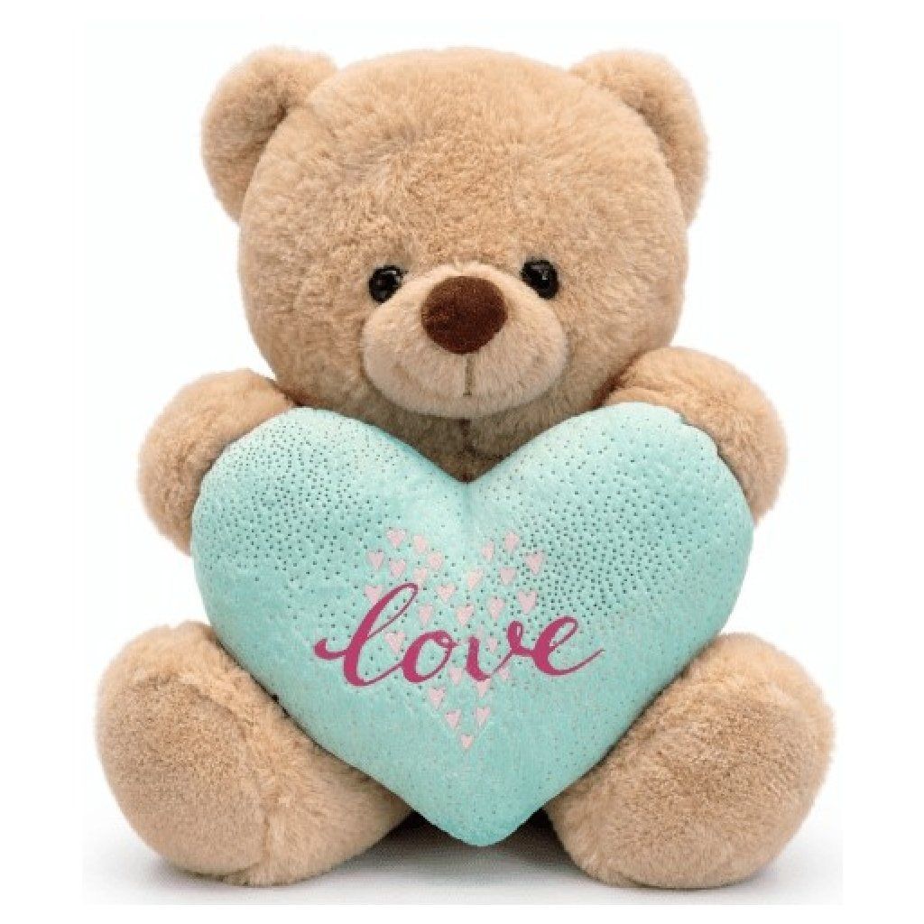 Světle hnědý medvídek se zelenkavým srdíčkem, 25cm